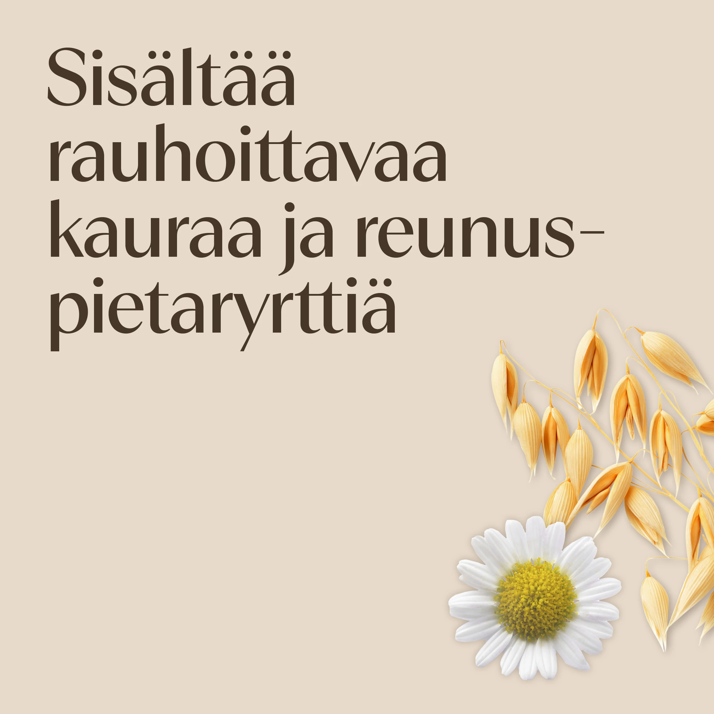 Aveeno CALM+RESTORE® Nourishing Oat Cleanser, voidemainen puhdistusgeeli kasvoille poistaa hellävaraisesti lian, epäpuhtaudet ja ylimääräisen talin. Herkälle iholle kehitetty, vaahtoamaton ja voidemainen koostumus puhdistaa hellävaraisesti, jättäen ihon rauhoittuneen ja ravitun tuntuiseksi.